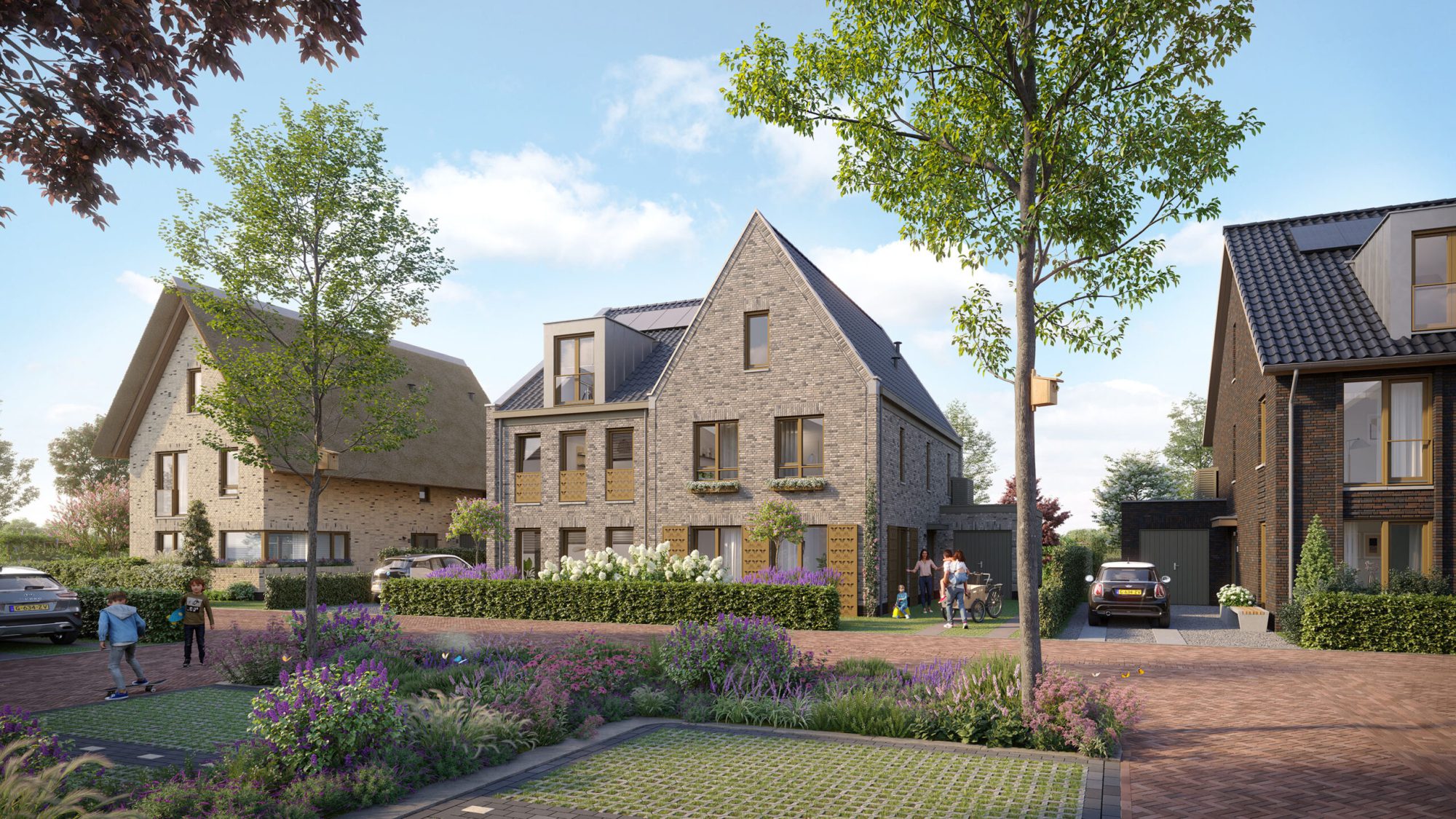 Droomweide straalt een warme dorpsbeleving uit met 105 koopwoningen en 45 sociale huurwoningen, waar ontmoeting en saamhorigheid centraal staan. Kinderen ontdekken de natuurlijke speelplekken en vlinderroute, terwijl bewoners genieten van een veilige en inspirerende leefomgeving vol comfort en verbinding.
