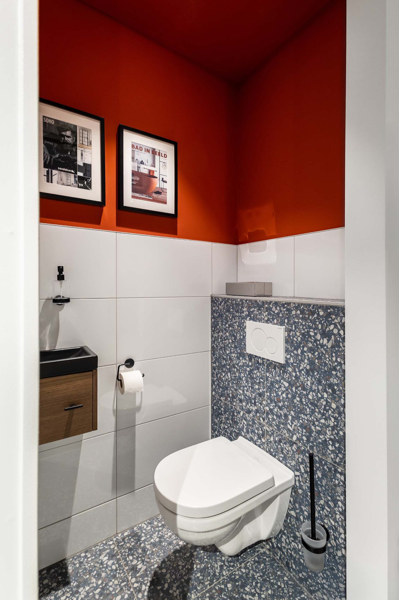 Het O.Novo toilet van Villeroy & Boch biedt topkwaliteit, terwijl de vtwonen tegels de nieuwste trends weerspiegelen. Durf groot te denken met een geverfd plafond voor een unieke look, waardoor uw toilet of badkamer een gedurfde, verbluffende uitstraling krijgt.